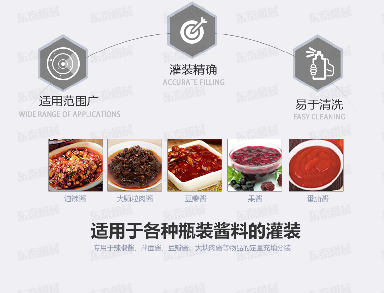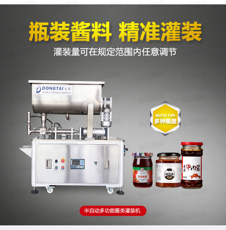 該小型辣椒醬灌裝機全不銹鋼制作,衛(wèi)生、安全